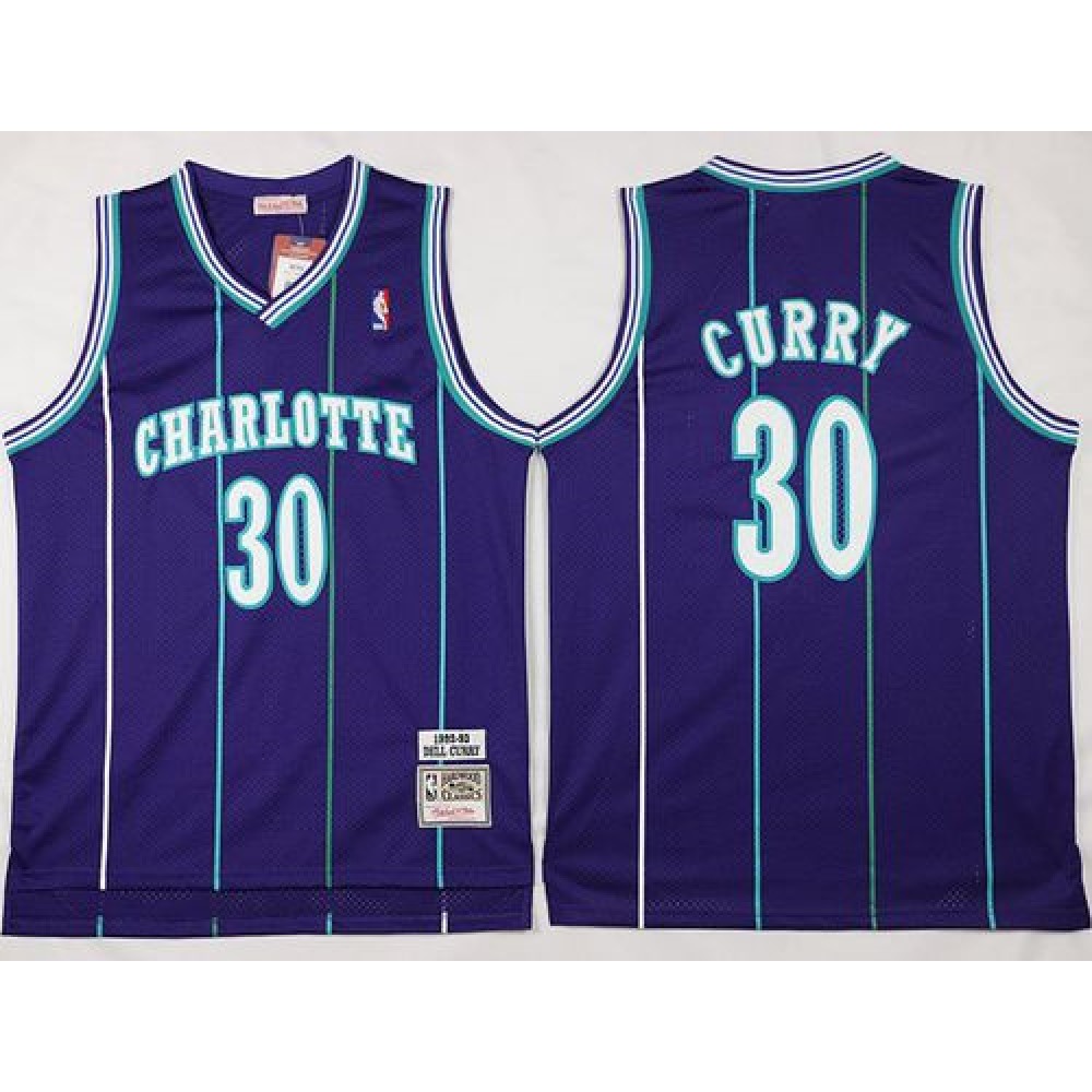 Mitchell And Ness Hornets #30 Dell Curry Purple Throwback Stitched NBA Jersey