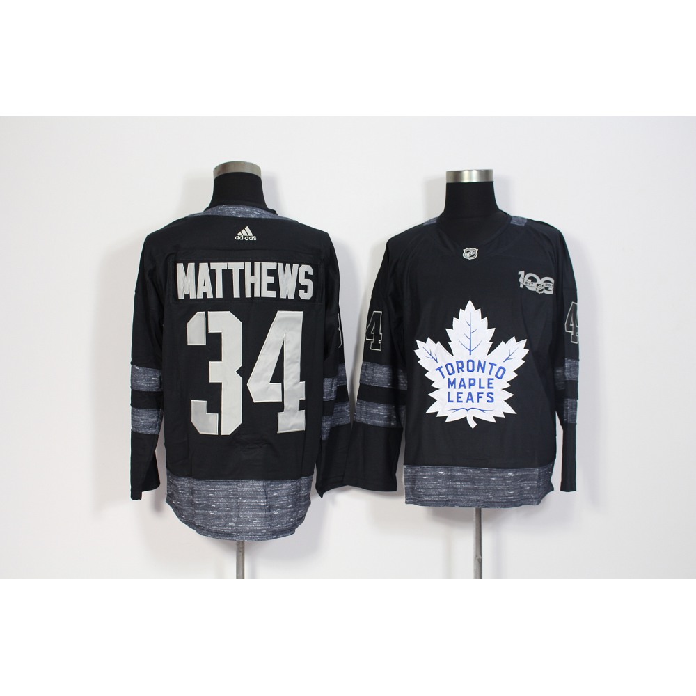 Men's Adidas Toronto Maple Leafs #34 Auston Matthews Black 1917-2017 100th Anniversary Stitched NHL Jersey