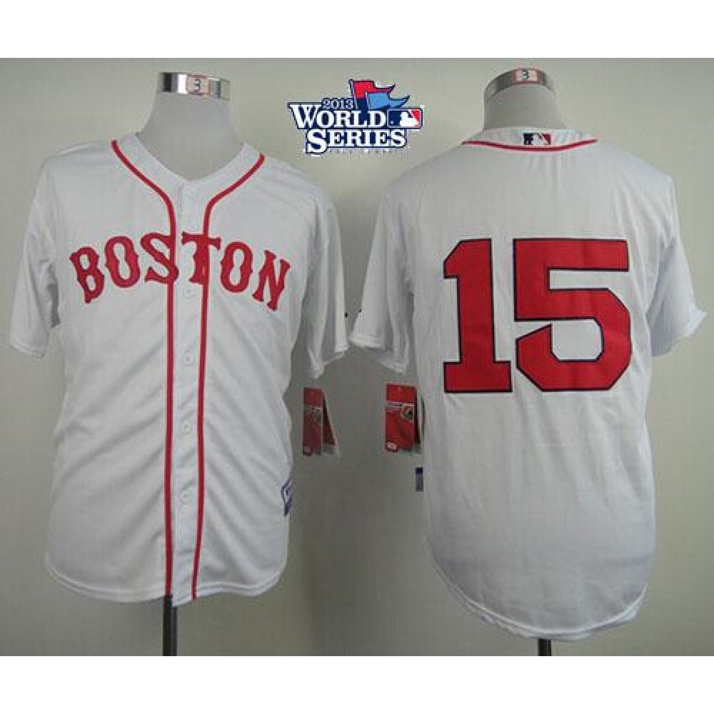 Red Sox #15 Dustin Pedroia White Cool Base 2013 World Series Patch Stitched MLB Jersey