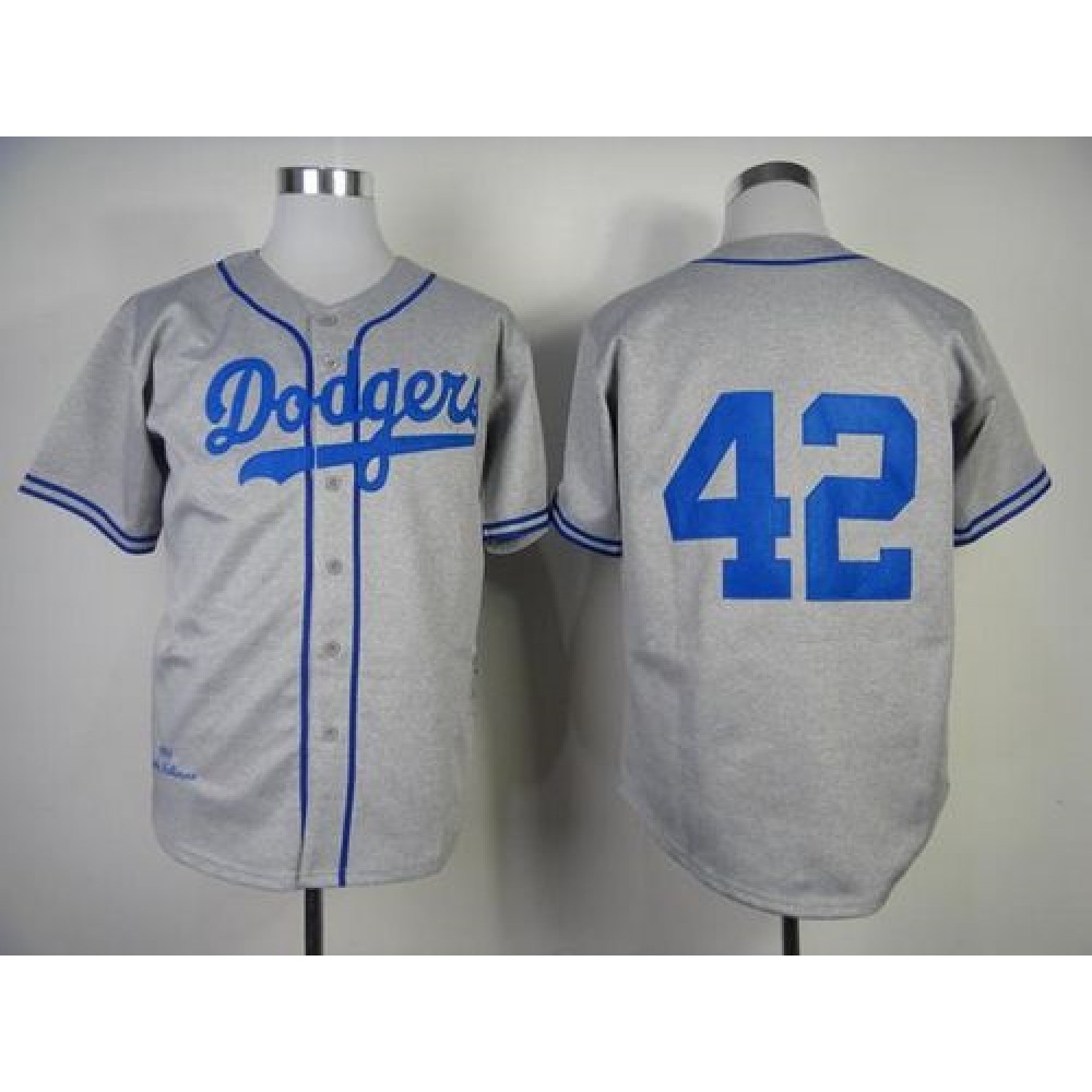 Mitchell and Ness 1955 Dodgers #42 Jackie Robinson Grey Throwback Stitched MLB Jersey