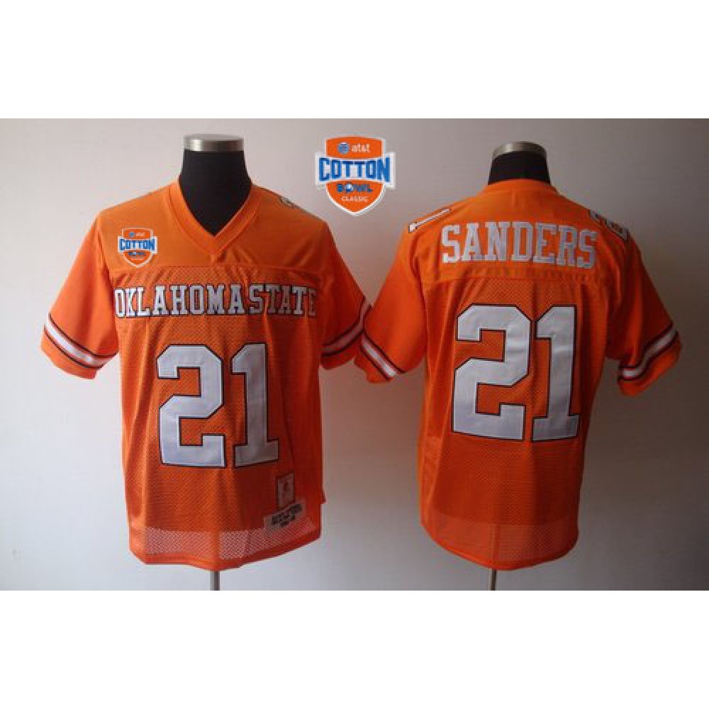 Cowboys #21 Barry Sanders Orange Throwback Stitched NCAA Jersey