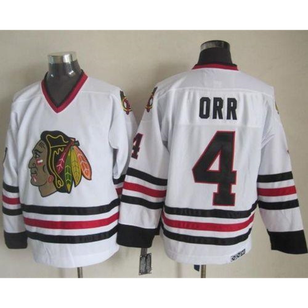 Blackhawks #4 Bobby Orr White CCM Throwback Stitched NHL Jersey