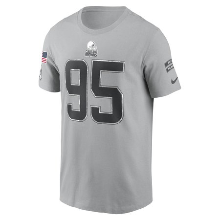 Men's Cleveland Browns Myles Garrett Nike Gray 2024 Salute To Service Name & Number T-Shirt